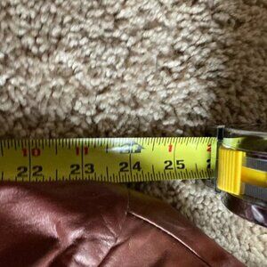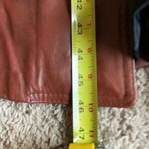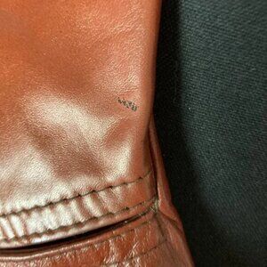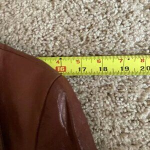 This is a vintage Leather Coat that is unworn with the tags still on it. Probably late 70s to early 80s. It's in excellent condition. No holes, tears, stains or odors. Only "problem" with this beautiful coat is a small mark on the collar as shown. I have priced with this defect in mind. Lining is in excellent condition. This coat is marked size 11-12 I would say it's a medium but please go by measurements. This beautiful coat would be an awesome addition to your wardrobe. Great for any occasion from the office to daily wear to date night.