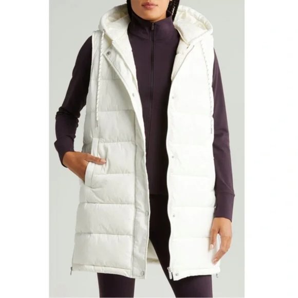 Add an extra layer of warmth to your wardrobe with this water-resistant puffer vest in a longline silhouette designed to keep your core cozy on cool-weather days.