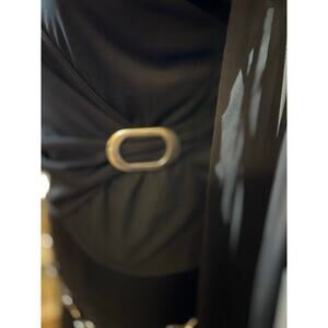 UNYX Cold Shoulder Mesh Drape Sleeve, Wrap Top with Silver Buckle