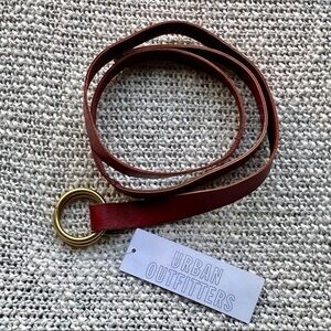 Cinch in for an effortlessly chic look with this double o-ring belt by Urban Outfitters. Thin band made of 100% leather, with a dual metal o-ring closure featuring adjustable notches for the perfect fit. A couple light scuffs from storage, shown in pictures. Let me know if you have any questions please.