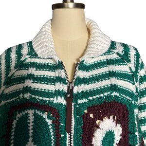 Urban Outfitters BDG Cardigan Sweater Patchwork Green Peace Crochet Knit Stripe Oversized Zip Front