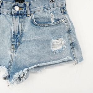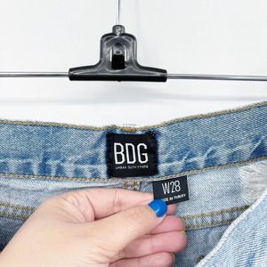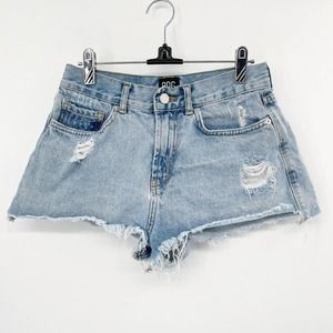 UO BDG Distressed Cheeky Cut Off Shorts Light Wash Sz 28 Raw Hem Denim Mid Rise
