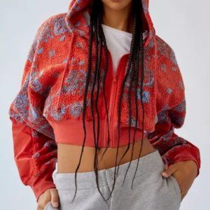Excellent, like new condition. Such a cute little sherpa hoodie, bought directly from Urban Outfitters. From the gorgeous burnt orange/reddish print, to the zip hoodie, but what I adore most is the cropped length, it hits you right at the most flattering point at your waist where you are skinniest! Style with a pair of high waisted jeans and a pair of doc boots. No smoking, no pets home.