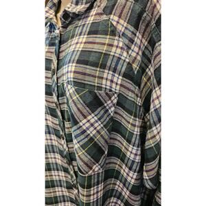 UO Brendan Green Drapey Flannel Christmas Button up shirt slub oversized S plaid