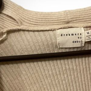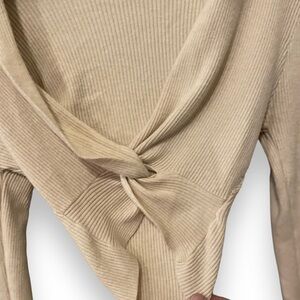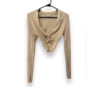 UO Dreamers Bu Debut Sweater Womens Small Taupe Knot Front Cropped Long Sleeve M