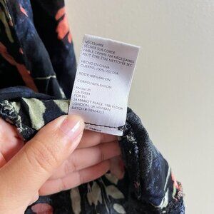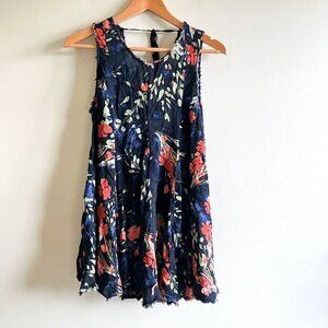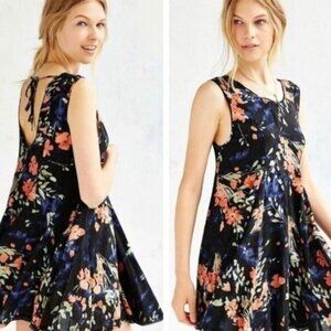 UO Ecote Black Floral Trapeze Clary Godet Trapeze Swing Dress Tie Back S…