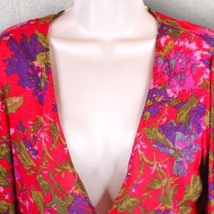 UO Georgie Surplice Blouse Floral Long Sleeve in Pinks Size Large