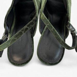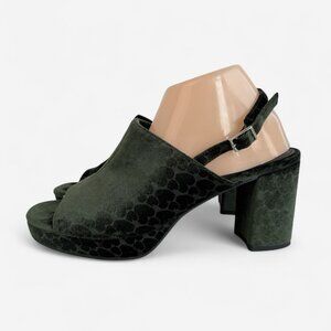 UO Green Velvet Platform Sandals Open Toe Slingback Chunky Heel EUR 41 US 10.5