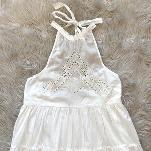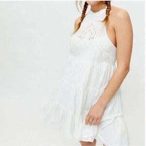 UO Head In The Clouds Crochet Neck Tiered Halter Mini Dress