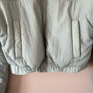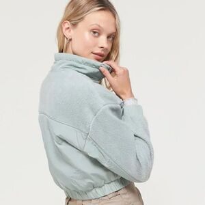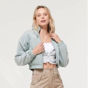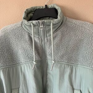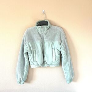 Super cute and warm mint green cropped jacket by Urban Outfitters! Size XS. Fleece on top and side of sleeves. Drawstring collar. Full zip. Two front pockets. In great condition!