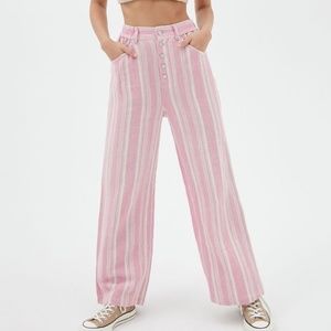UO Kai Striped Boho Beach Wide Linen Baggy Pant