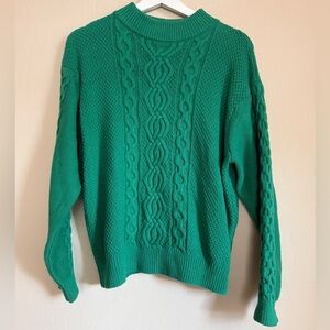 UO Kelly Green Cableknit Sweater Thick Chunky Fitted Crew Neck Women’s Small