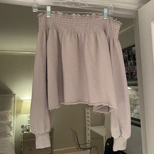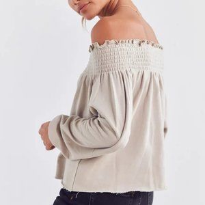 Urban Outfitters Kimchi Blue Cecil Smocked Off the Shoulder Sweatshirt Top