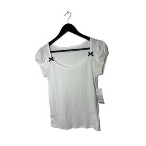 UO Kimchi Blue Ivory with black bows Puff Sleeve Baby Tee, Size large new