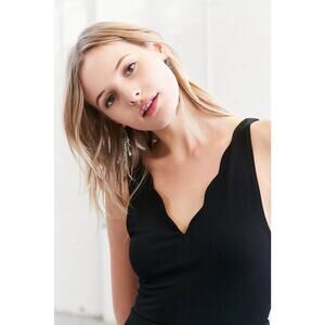 UO Kimchi Blue Rochay Knit Scallop V-Neck Romper Black Size Small Flowy Swingy