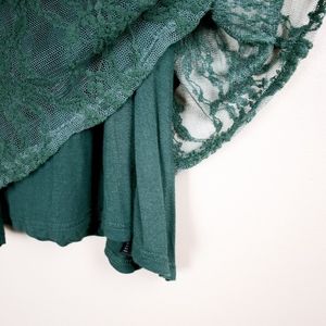 Layers are attached at the shoulder so you can tuck the bottom layer without disturbing the lacey layer.