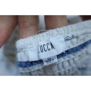 UO Lucca Couture Emory Striped Button-Down Cotton + Linen Cropped Top