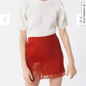 UO Lucy Velvet Lace Trim Mini Slip Skirt Rust Orange