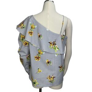 UO Lumiere One Shoulder Floral And Blue Stripe Blouse Size L New