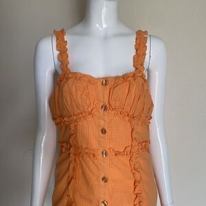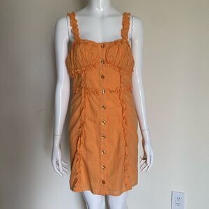 UO Luxe Dreams Orange Button-Front Ruffle Mini Dress Size Small