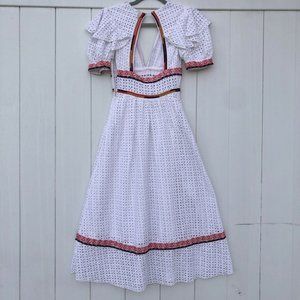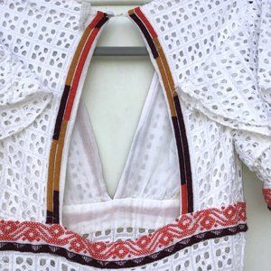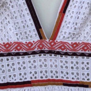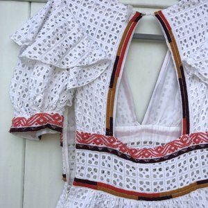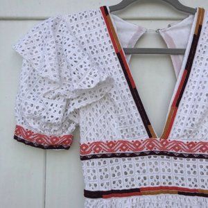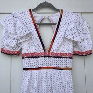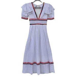 UO Madiera White Eyelet V Neck Midi Dress XS
