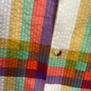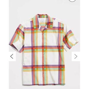 UO Madras Grid Plaid Seersucker Button-Down Shirt Size M