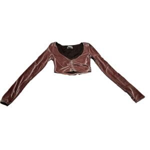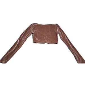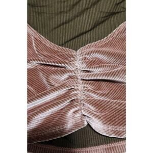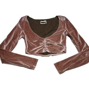 UO Paradox Ruched Mauvey Pink Velvet Ribbed Long Sleeve Cropped Top Small Petite