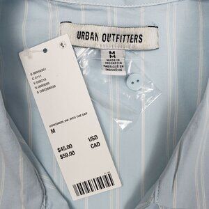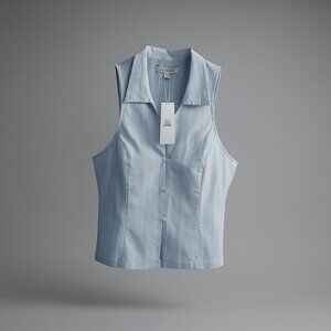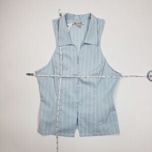 UO Party Girl Cotton-Blend Button Down Sleeveless Shirt Women Medium Blue Stripe