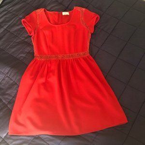UO Pins & Needles Red Crepe Dress w/ Lace Cut-Outs Sz 2