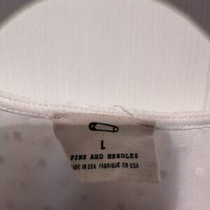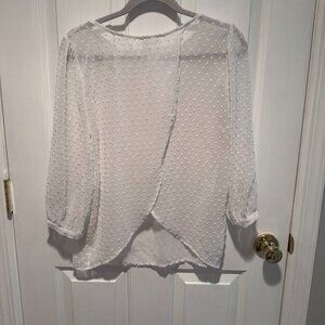 UO Pins and Needles White Sheer Polka Dot Blouse with Open Back - Size Large