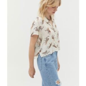 ⭐️ UO Printed Button Down Shirt Leopard Cheetah Cat Hipster Artsy Trendy Blouse