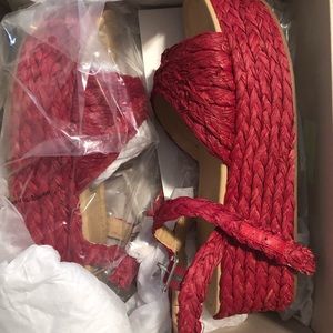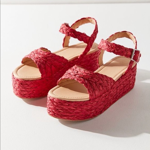 Midsummer day dream with this platform sandal by Urban Outfitters. Classic strappy upper made of textured raffia that weaves down to the sole, with a lightly padded step + coated bottom.