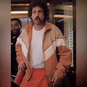 Hubie Halloween Adam Sandler Bomber Jacket that you are seeing here, crafted from top quality fabric in an eye fascinating orange color. Meanwhile, the inner side covered with a different material that is viscose helps to absorb all the sweat of your body. A branded zipper closing and opening feature present on the front side reaches up to the level of a traditional shirt style collar. Elastic cuffs of full-length sleeves wrap perfectly around your wrist. A wide stripe of white and light brown colors designed on the front side. The inner side of the Adam Sandler Jacket does not contain any pocket but the outer side has two pockets on the waist side. We assure you, it is the exact same one that you have seen in the film.