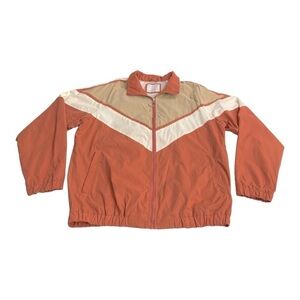 Urban Outfitters Retro Look Track Jacket Size L Tan, Orange, Cream Multi Color Full Zip Classic.
