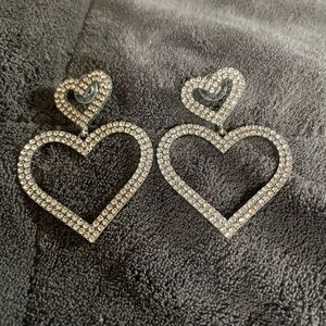 Double heart statement earrings etched with lovely rhinestone detail, complete with a post closure
