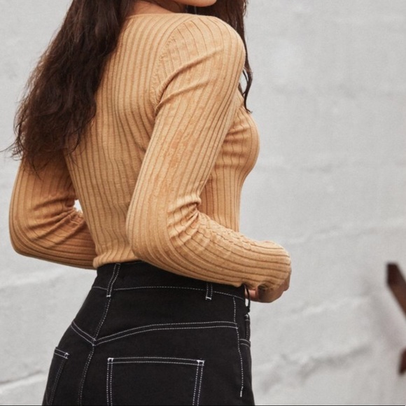 UO mustard ribbed sleeved sweater