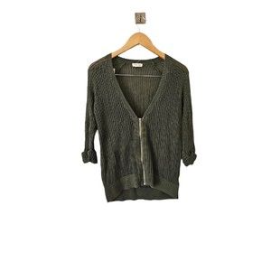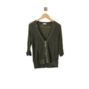 UO Silence + Noise Open Knit Cardigan Sweater Large Green Zip Front