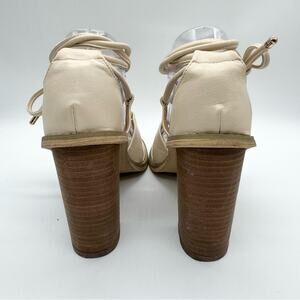 Urban Outfitters Silence + Noise Sofia Lace Up Ankle Tie Heel Sandals Cream Size 9 Boho Glam