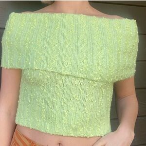 UO Silence + Noise Starlet Off-The-Shoulder Knit Top Lime Green Size Small New