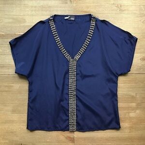 Sparkle & Fade from Urban Outfitters. Jeweled Cold Shoulder Top. V neckline. Loose fit. Silky material. Cutouts are the shoulders. Short batwing sleeves. None of the jewels are missing. Size small.