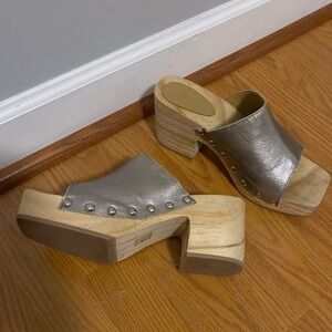 UO Square Toe Studded Platform Mule Clogs in Metallic Silver