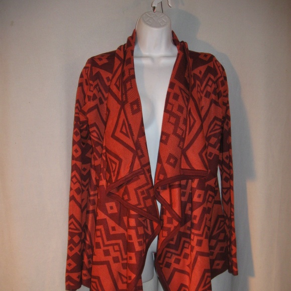 Staring At Stars Array cardigan sweater size medium. Orange and purple Aztec design. Long sleeves. Asymmetrical hem. Underarm to underarm-21''. Length in back-29''. Excellent condition. Thanks for looking :)