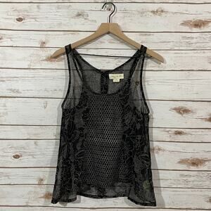 UO Staring at Stars Sheer Button Back Tank - Black - Medium
