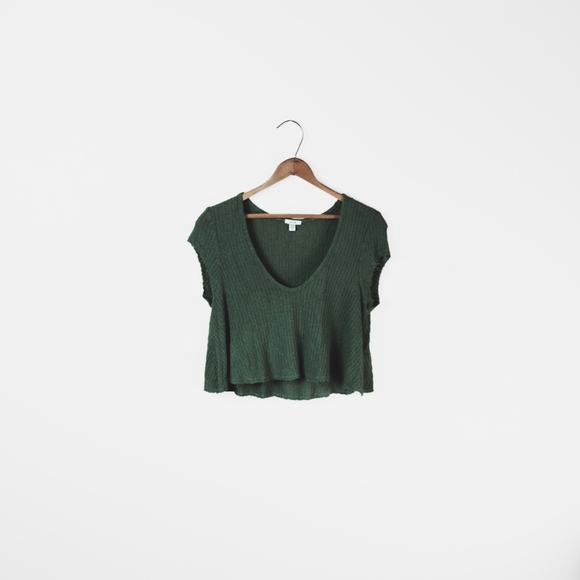Cutely cropped + boxy with cap-sleeves + a V-neck.