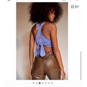 UO Top Satin Blue Cross Back Crop Blouse V Plunge Cross Back Bralette XS