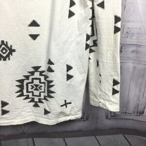 White with black print, has a southwestern Aztec print on it. Nice over-sized and wide neck sweatshirt from Urban Outfitters. Good used condition.