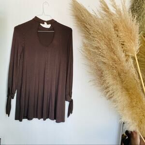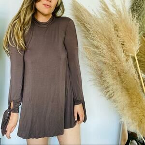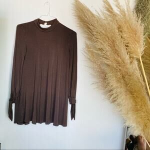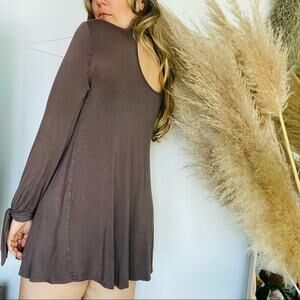 UO URBAN OUTFITTERS Brown Long Sleeve Tie Open Keyhole Back Swing Mini Dress S