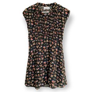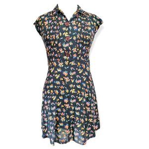 🔥 UO URBAN OUTFITTERS BLACK MULTI COLOR PRINT BUTTON MINI SHIRT DRESS TUNIC S