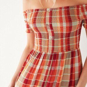 UO Urban Outfitters Monica Smocked Off-The-Shoulder Midi Dress S Small