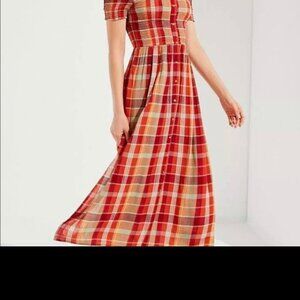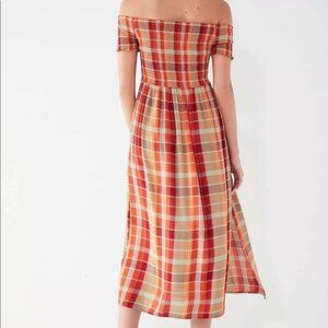 UO Urban Outfitters Monica Smocked Off-The-Shoulder Midi Dress S Small